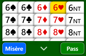 “Yes”は、任意の8レベルの入札がNullo(Misère)入札をoverbidすることを可能にします。 これは±250Nullo(Misère)のデフォルトです。