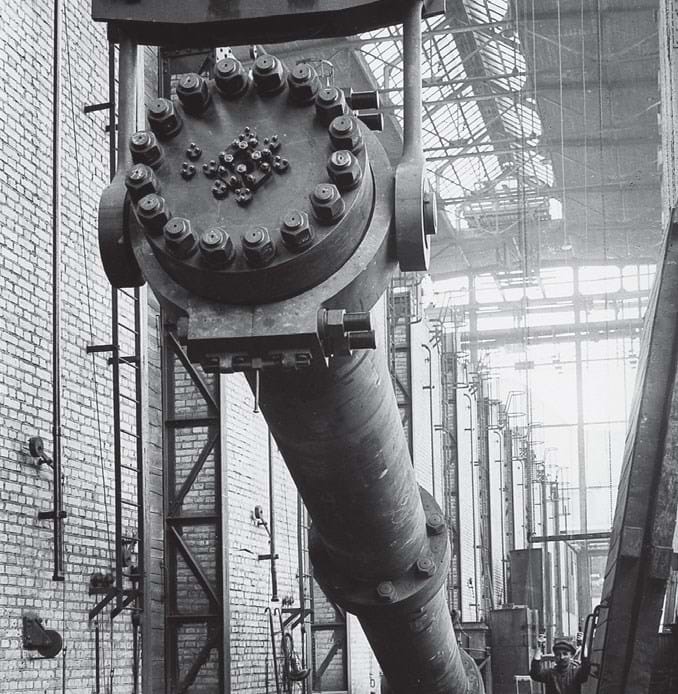 foi uma precaução sábia: após 80 horas de serviço, o material tornou-se quebradiço e os tubos rebentaram. It turned out that the hydrogen had descarbonised the perlite in the carbon steel and formed a brittle alloy with the iron.,Bosch resolveu o problema ao projetar a primeira câmara de reação forrada – uma jaqueta de aço pressurizada fina forrada com um aço macio. O hidrogênio foi capaz de se difundir através do forro e foi permitido escapar através de ranhuras e buracos na jaqueta, para evitar uma perigosa acumulação de pressão.