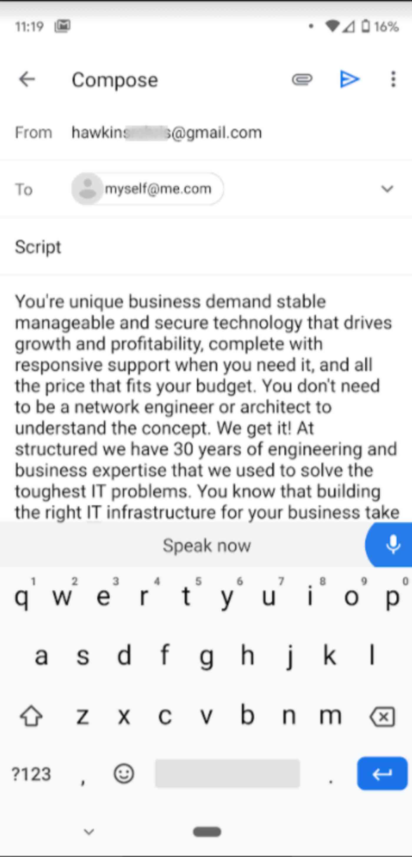 para ser justo para determinar a precisão, eu usei o mesmo script de 200 palavras para todos os testes. Tem uma variedade de comprimentos de sentença, algumas palavras específicas da indústria, e vários nomes de negócios. E como mencionado, eu usei um auscultador de preço médio como um microfone. O meu espaço de testes tinha muito pouco ruído de fundo.,
